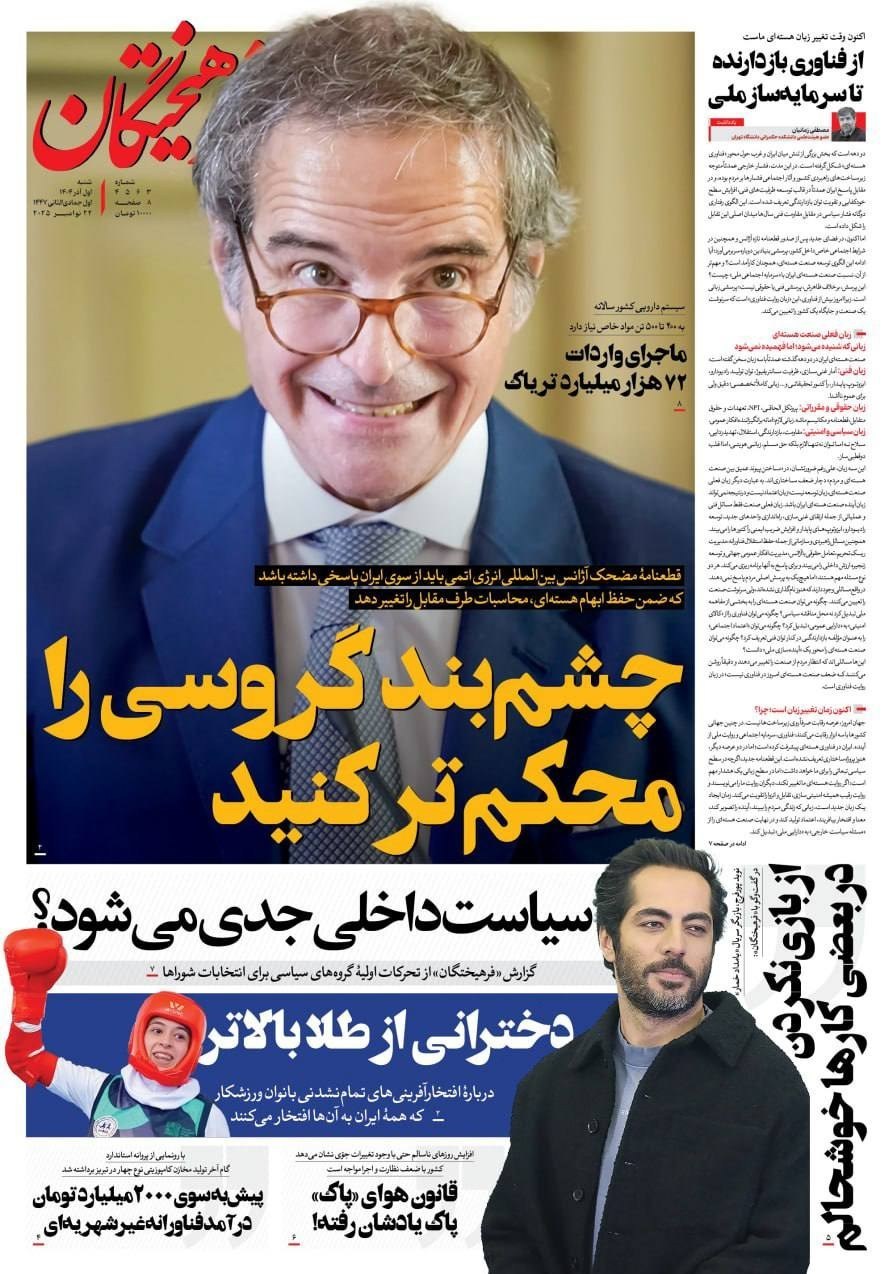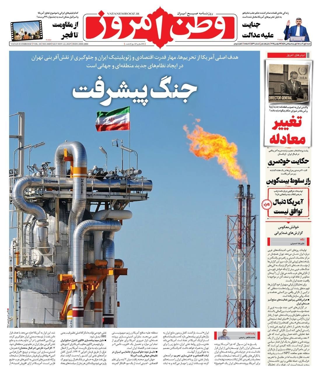 صفحه اول مطبوعات شنبه 1 آذر/جنگ پیشرفت – فوتی فوری